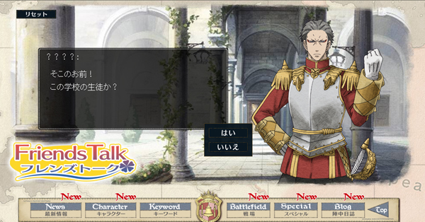 戦ヴァル2のフレンズトーク、ガッセナール来た!ガッセナールってレア?!思わずクリック…そして、嬉しさのあまりに画像アップ。ここんとこはリコリス狙ってたのに…。フレンズトークって、6人攻略対象がいるんだよね?マガリとフランカとリコリスと…ひげのオヤジと、アレクシスと誰がいるの?ガッセナールはカウント外ですかね?ヒゲは名前忘れたなぁ…あいつも学生…ですよね、制服着てたし。
